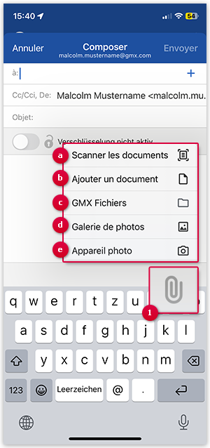 Uploadez diverses pièces jointes dans un e-mail avec l'appli GMX Mail pour iOS et envoyez-les à vos contacts en quelques étapes seulement.