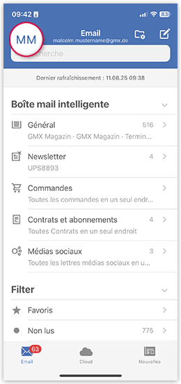 Appuyez sur l'icône de profil dans le coin supérieur gauche (contenant vos initiales ou votre photo de profil).